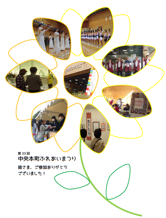 1年に1回、11月の土日の2日間「中央本町ふれあいまつり」を開催しています。登録団体の皆さまの日頃の活動成果の発表や体験コーナーなどを行い、地域の皆さまとの交流を図っております。